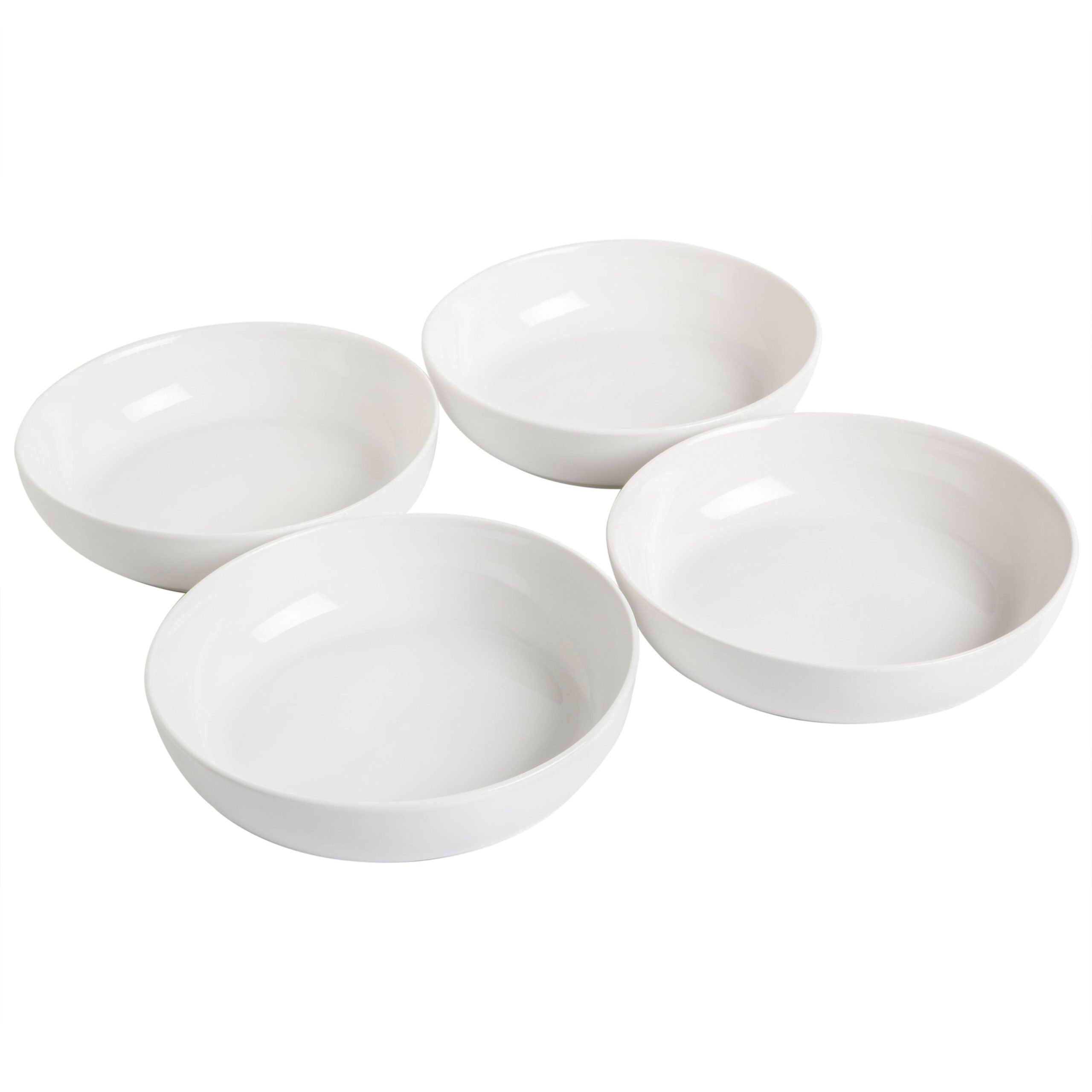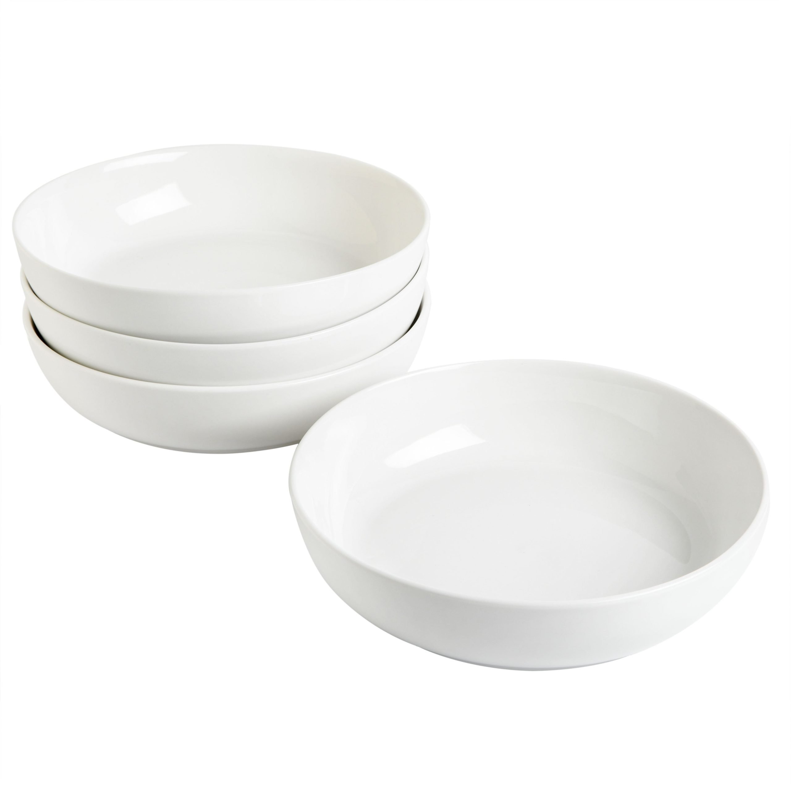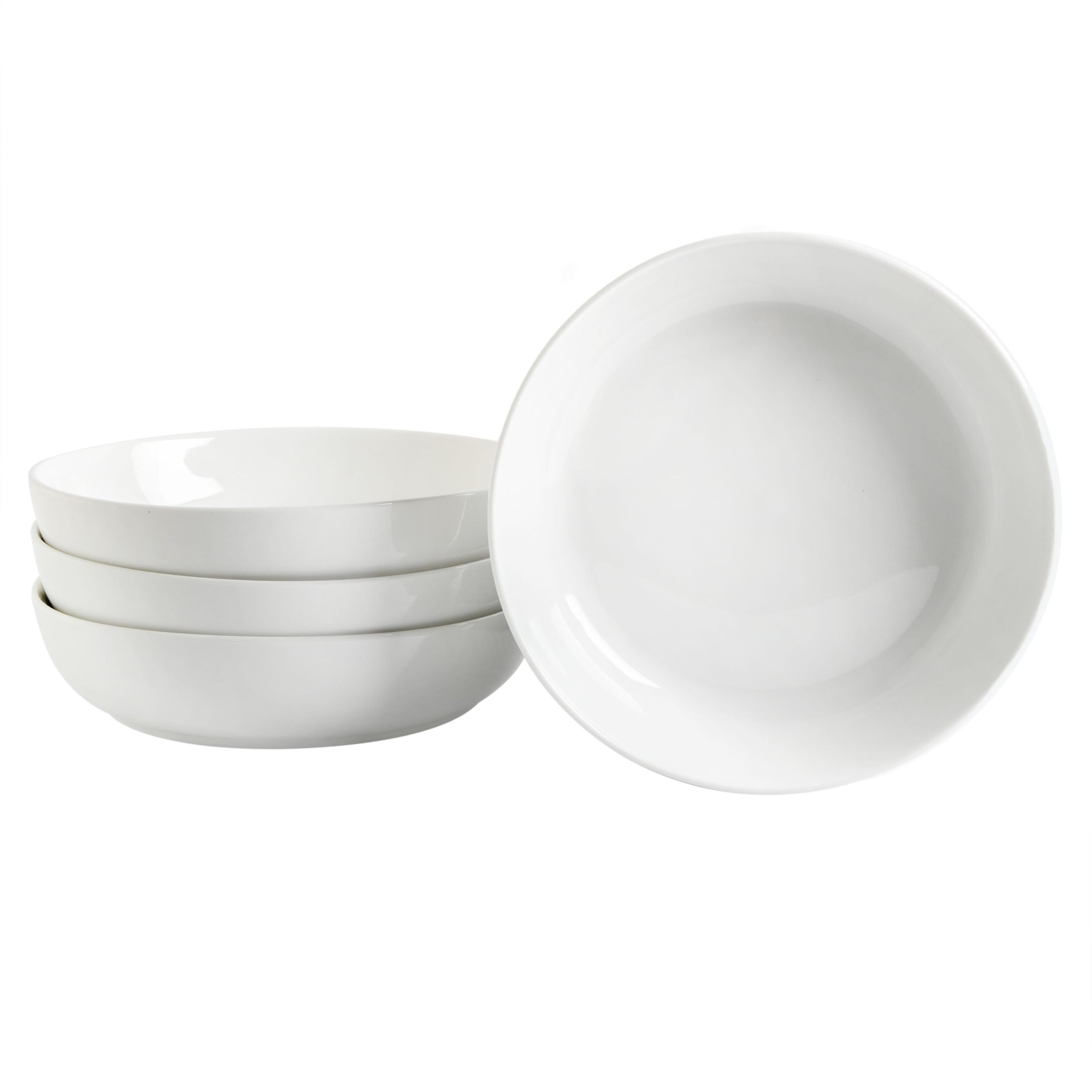 The Zen Buffet 4-Piece pasta bowl Set is the perfect all in one dish. The cross functional use of these dishes will truly be your go-to item for almost all dining experiences. As a result of its all-natural AB-Grade Porcelain material, these dishes are not only convenient in its shape but also incredibly durable and lightweight. The classic white will add an everyday elegance to your dining table. Enjoy the Zen Buffet 4-Piece pasta bowl Set today