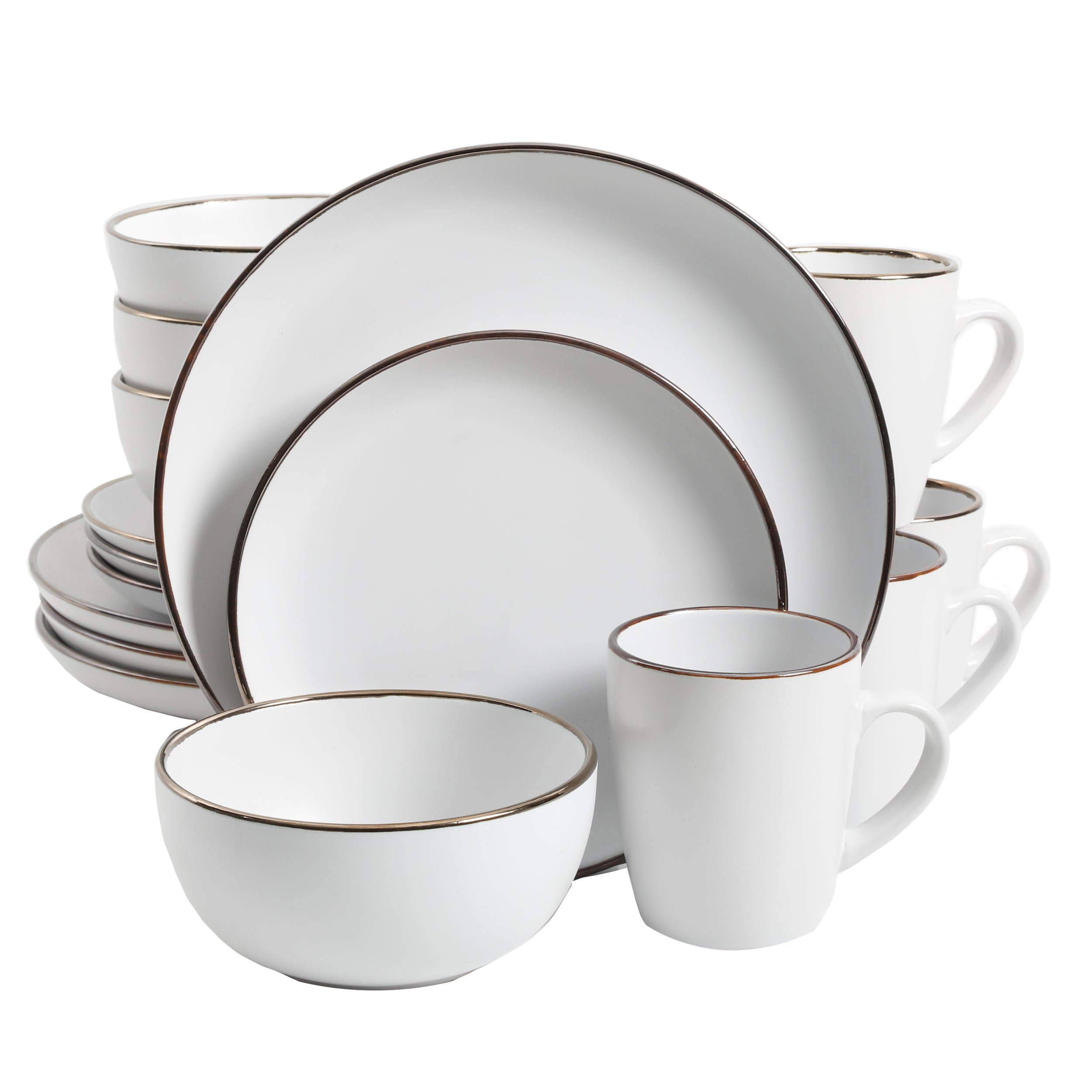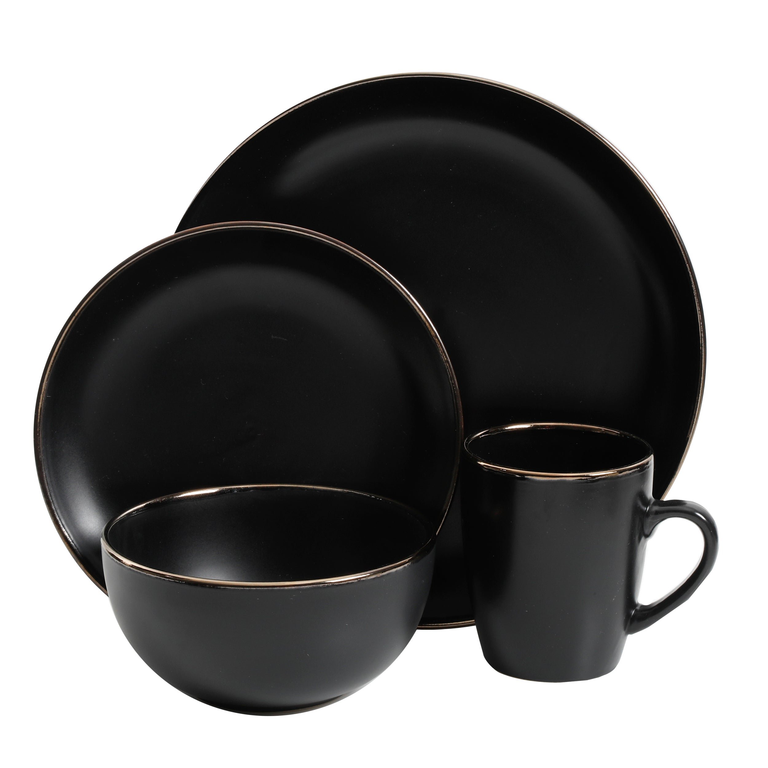 The Rockaway 16-piece Stoneware Dinnerware Set is the perfect meeting place between contemporary style and everyday functionality. Every piece of this dish set has a soft matte glaze finish on a stoneware material that brings the latest on-trend colors to your dish collection. The Rockaway classic coupe shape looks great with any table setting and provides additional surface area for showing off delicious homemade meals. No matter what the occasion is the Rockaway 16-piece plate and bowls Set is a set you need in your home. All items are made of durable stoneware that is dishwasher and microwave safe. This plate and bowls set offers service for four including 4 dinner plates, 4 dessert plates, 4 bowls, and 4 mugs. Whether you