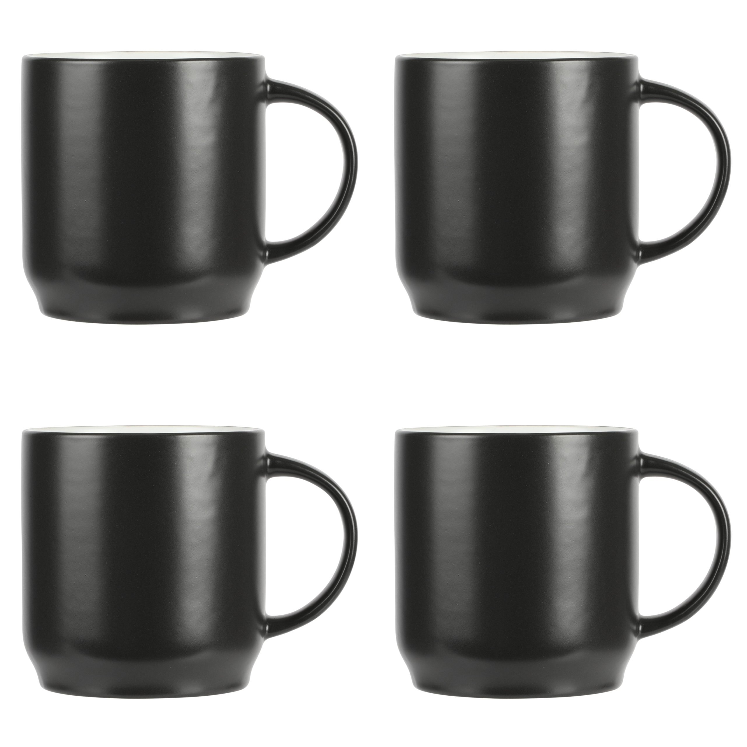 Create maximum impact with minimal effort with the 4-piece Mug Set. Crafted from durable, two-toned stoneware, these mugs serve up any hot or cold drink to complement any meal, from breakfast to dinner. Each mug features a comfortable side handle for a safe and secure grip. The graceful contours and bauhaus-inspired appeal add a modern look to any table setting, kitchen storage, or work desk. This set includes place setting for four, perfect for everyday dining and casual entertaining. Dishwasher and microwave safe.